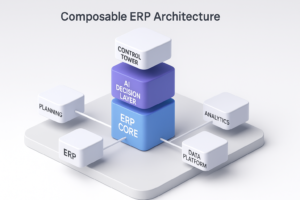 Enterprise Resource Planning (ERP) is not becoming obsolete, but traditional, monolithic ERP alone is no longer enough to remain competitive in today’s dynamic business environment. The relevant solution is, ERP as a stable transaction core complemented by AI-driven decision layers, supply chain control towers, and digital twins within a composable architecture. This combination delivers real-time visibility, faster decisions, and increasingly semi-autonomous operations while preserving compliance and financial integrity.